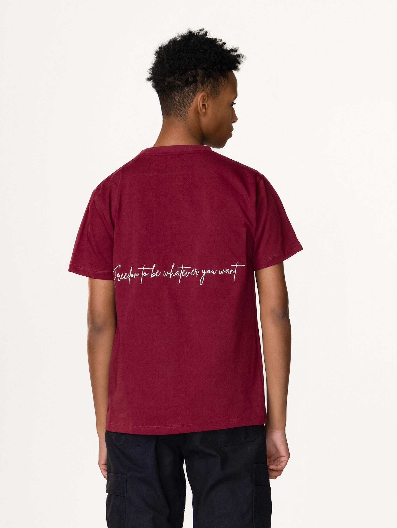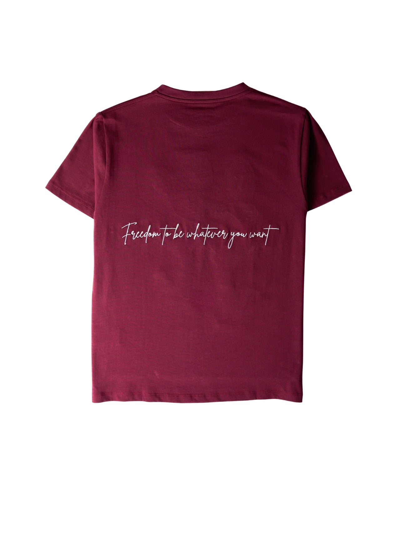 THIS 100% JERSEY COMBED COTTON TEE IS CRAFTED FROM MID-WEIGHT, SOFT COTTON, REFINED WITH A CLEAN DOUBLE NEEDLE NECKLINE AND SHOULDER-TO-SHOULDER COVER FOR A POLISHED FIT. THE STANDOUT FEATURE OF THIS TEE IS THE DARK AND VIBRANT ORANGE EMBROIDERY ON THE CHEST, SYMBOLIZING OUR COLLECTION'S THEME OF 'FREEDOM' AND REFLECTING THE IDEALS OF LIBERATION AND SELF-EXPRESSION.