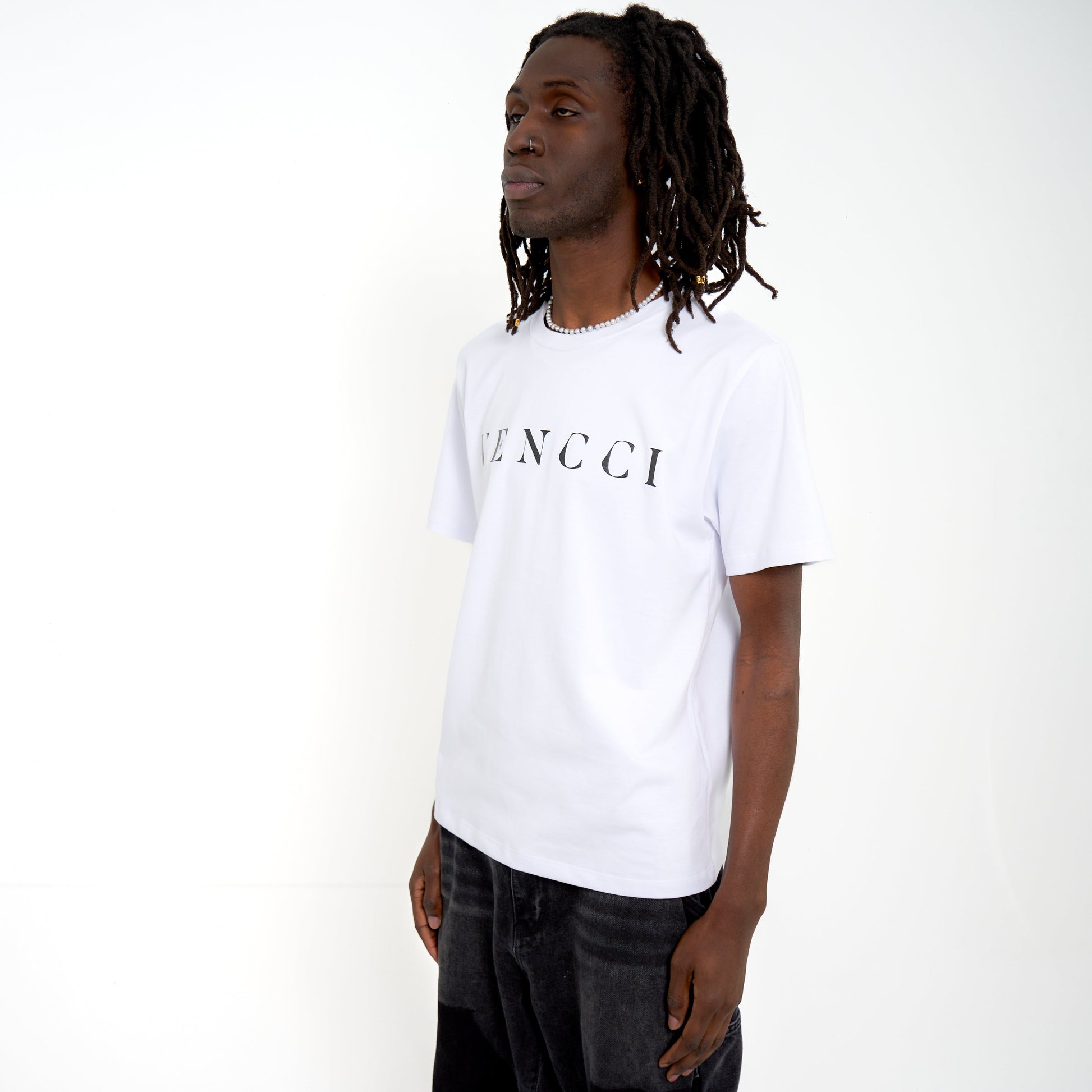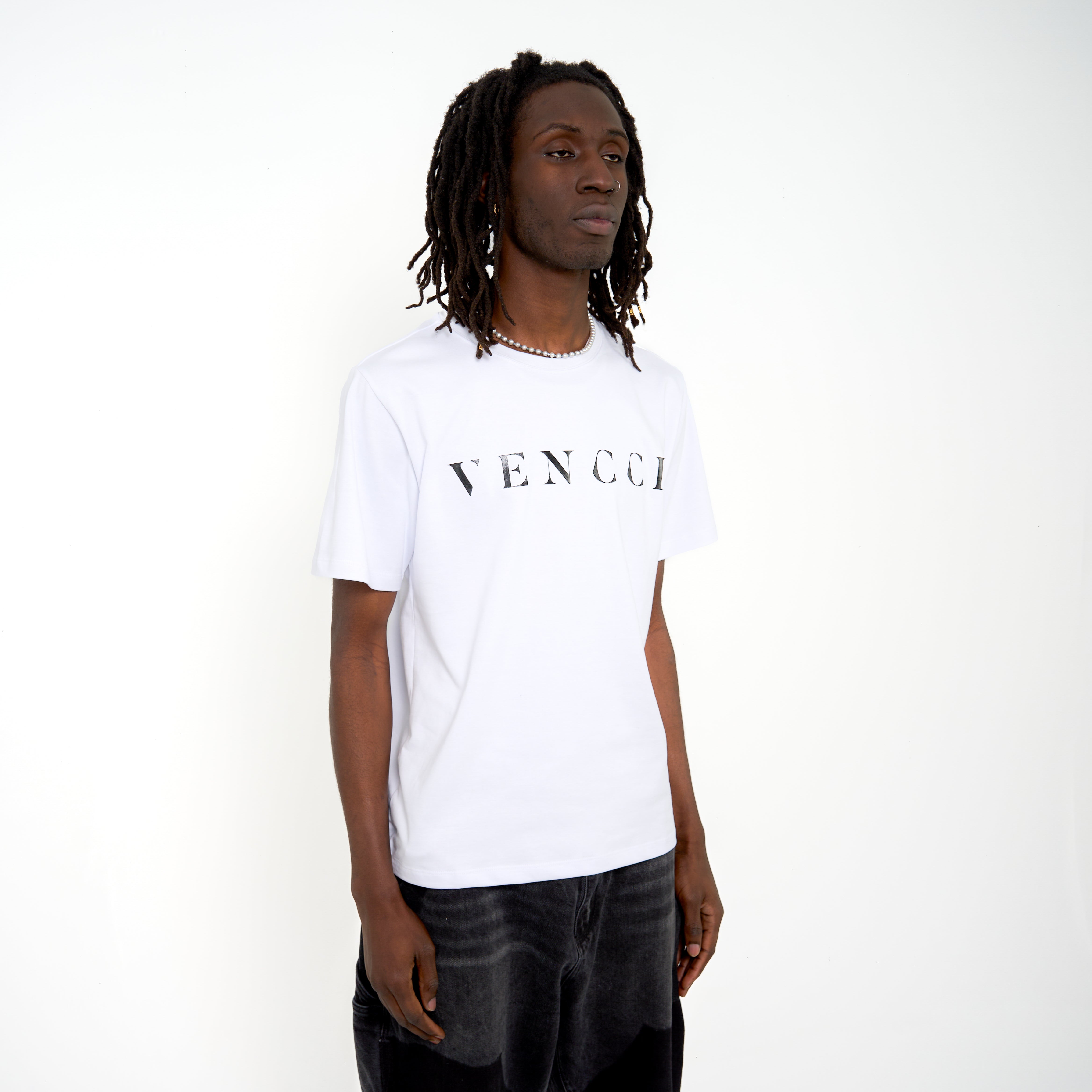 DISCOVER A CORE PIECE FOR YOUR WARDROBE WITH OUR BLACK T-SHIRT, FEATURING STRIKING VENCCI GRAPHIC ACROSS THE CHEST. MADE WITH A THICKER 100% COTTON, THIS TEE IS CRAFTED TO LAST OVER TIME, PROVIDING BOTH WARMTH AND DURABILITY FOR THE FALL/WINTER SEASON. DESIGNED WITH LONGEVITY AND STYLE IN MIND, A VERSATILE ESSENTIAL THAT EMBODIES QUALITY AND TIMELESS APPEAL.
